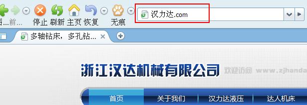 為方便客戶查看我司網(wǎng)站,我司申請了中文域名"達(dá)人機(jī)床.com“"漢力達(dá).com",您只要在地址欄中輸入 "達(dá)人機(jī)床.com" 或者"漢力達(dá).com”即可訪問到浙江漢達(dá)機(jī)械有限公司的官方網(wǎng)站。