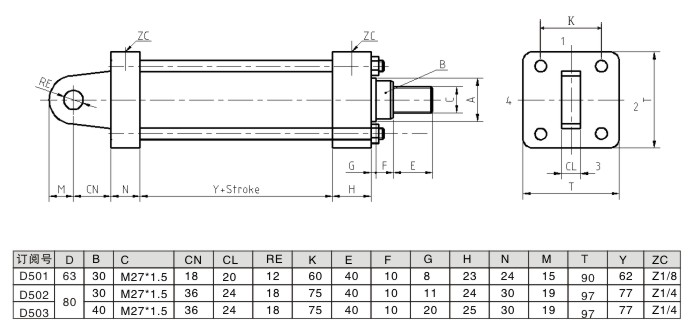 以下為銷孔安裝的低壓拉桿液壓缸的尺寸圖及參數(shù)。